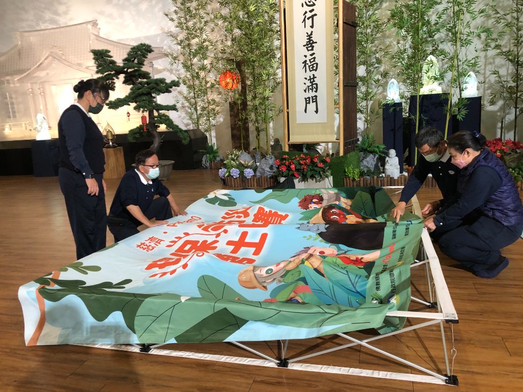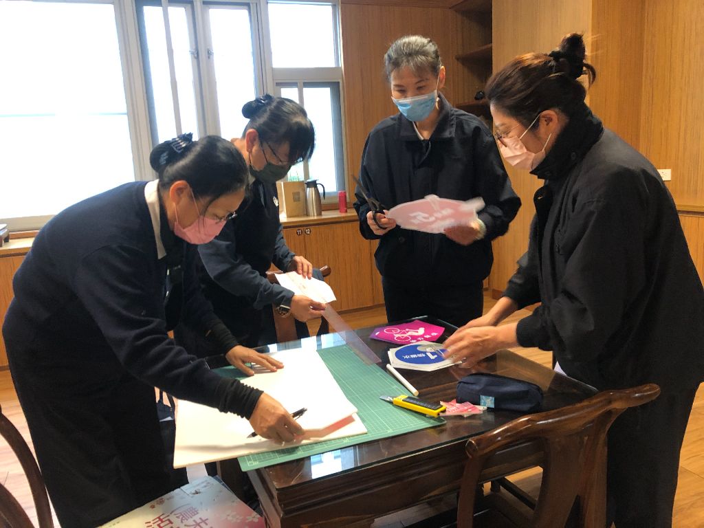 她們隨時補位,都是彼此好幫手。陳慧敏說,對海報美編也不懂,只是依樣畫葫蘆地把圖,一張張地裁切貼在回收的厚紙板上,再加以美編。
