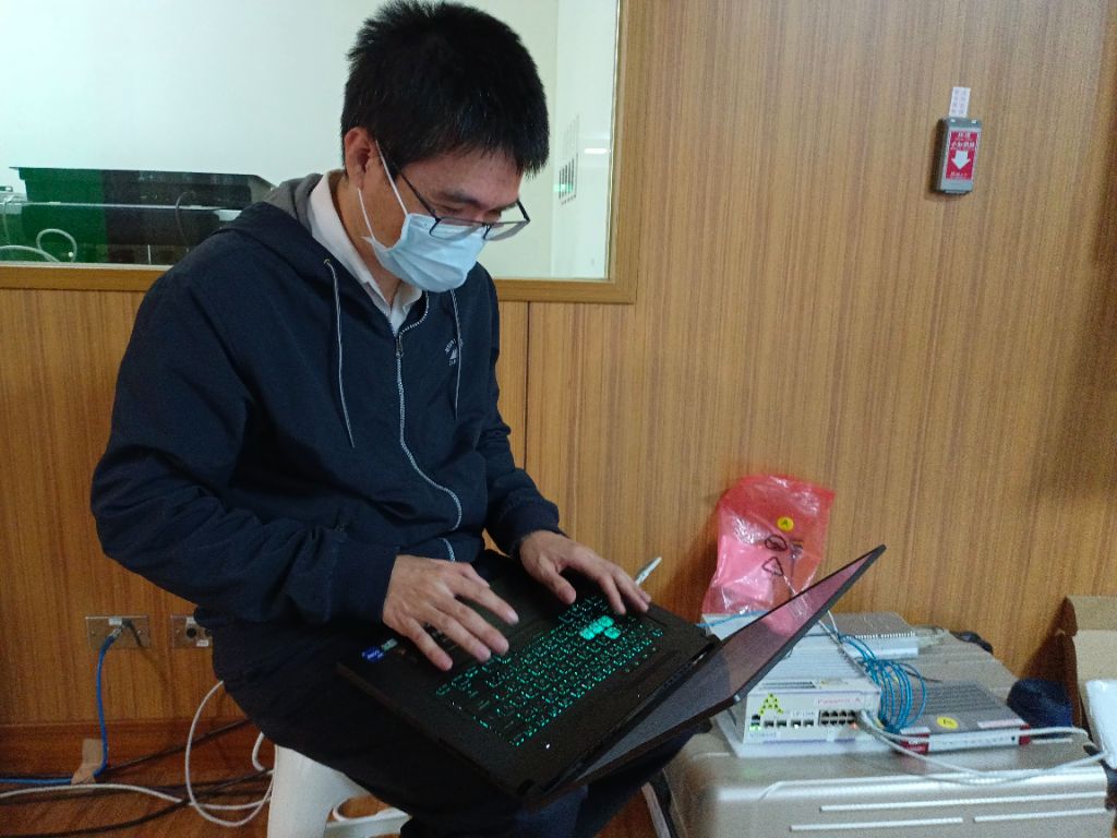 資訊處的同仁還要負責把現場的臨時網路架設好,陳韋任說,「因為現場的比賽人數很多,所以網路申請大頻寬,也專買來為這場比賽的。」