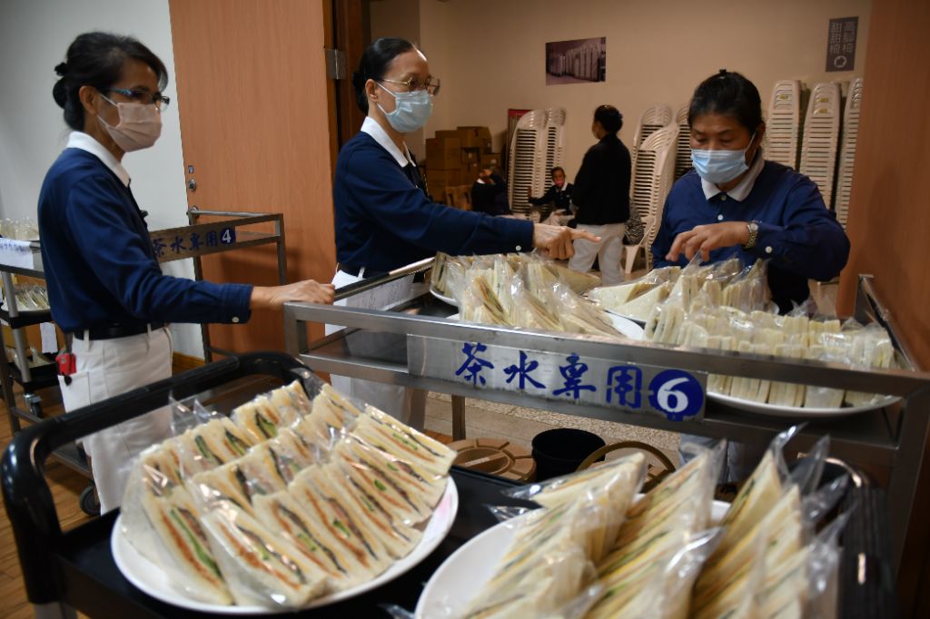 茶水點心組、交通機動組、煮食午餐組……等等,電競賽當天都就緒了。桌上一盤盤的三明治,是茶水點心組志工親手配製的,鄭碧枝說:「我們覺得最好的東西才會送給貴賓,好像對待自己的孩子一樣,以尊重的心,滿滿的愛來迎接他們。」