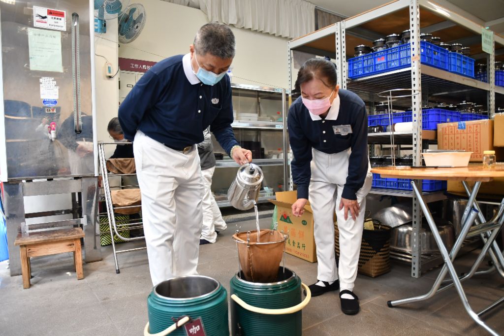 為了迎接學校師生,中央茶水的團隊動員二十多位志工,賴耀宗是婦唱夫隨的其中一位。他帶著愉悅的心情,要來跟大眾結好緣,所以連咖啡也要用心煮,做出來的茶點才能讓大家賓至如歸。