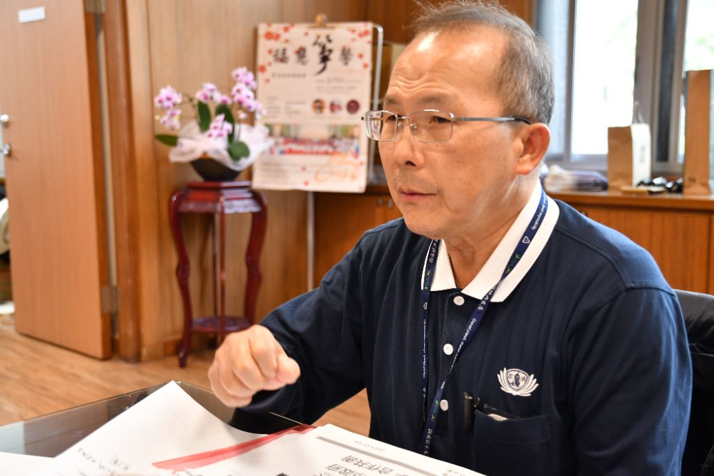 慈濟志工汪宗斌在教育二十七載,他說:「做了志工,才知道要放下知識,不能認為是老師,就要聽我的。」這是做了十七年志工的智慧增長。[攝影者:簡鴻海]