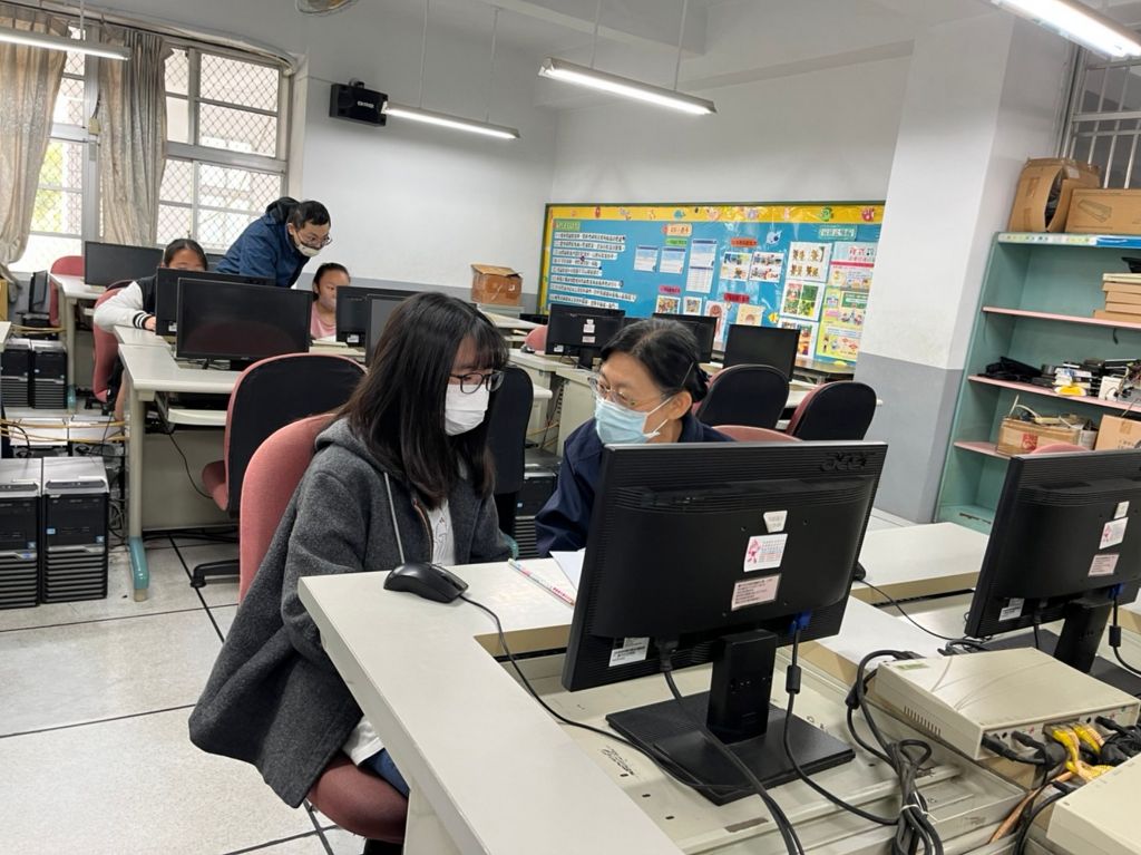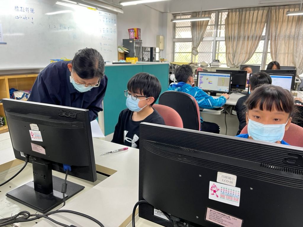 北屯區四維國小的參賽者每天上午八點至八點四十分都會在資訊電腦教室集訓,他們在黃翠琴校長和主任的陪伴下,非常專注地在練習。