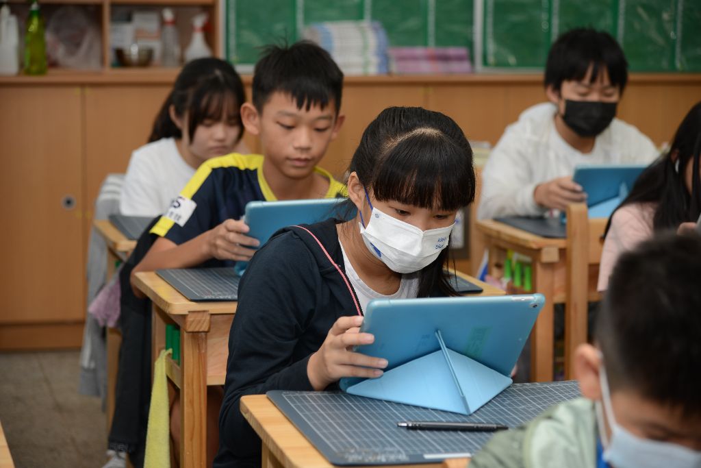 六年五班阿維分享:「得到第一名,我覺得很開心!從遊戲裡面學到一些保護地球的知識,還有環保回收的知識。」小嘉從遊戲中:「我學到了各種環保的知識,然後我會把它利用在生活當中,剛才遇到網路不穩定,所以,我就從第二名掉到第十名;後來爬升到第五名。」