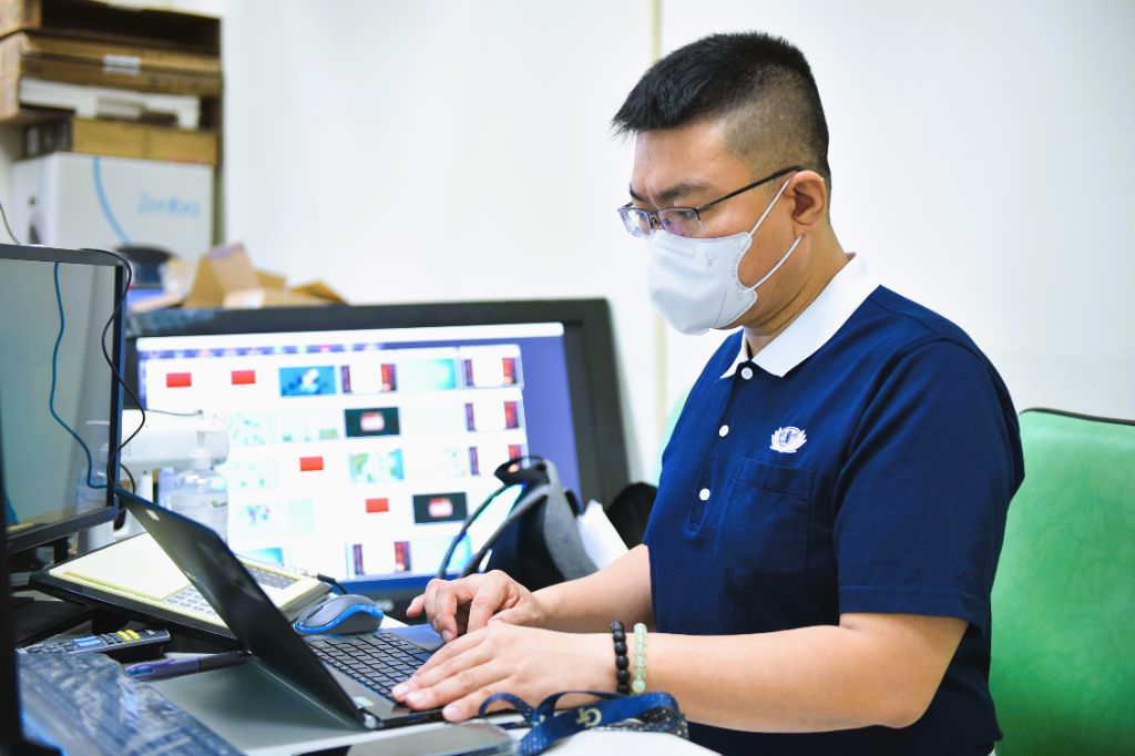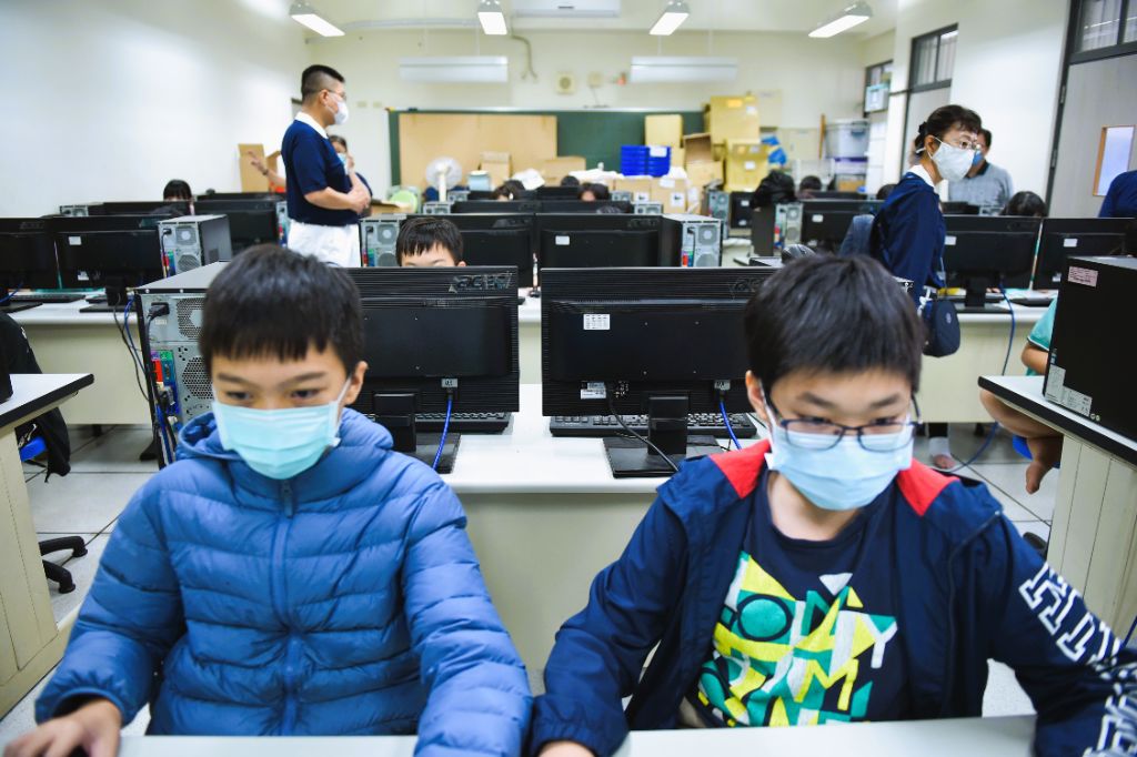 清晨七點五十分,早自修的鐘聲一響,參賽學生陸陸續續來到電腦教室前集合。李玫芬主任整隊、志工噴上淨手液後,選手依序進到電腦教室內就座,自行開機並登入慈濟PaGamo的網站。少數無法登入的學生,則由電腦老師呂明吉和慈濟志工吳宗樺協助處理。