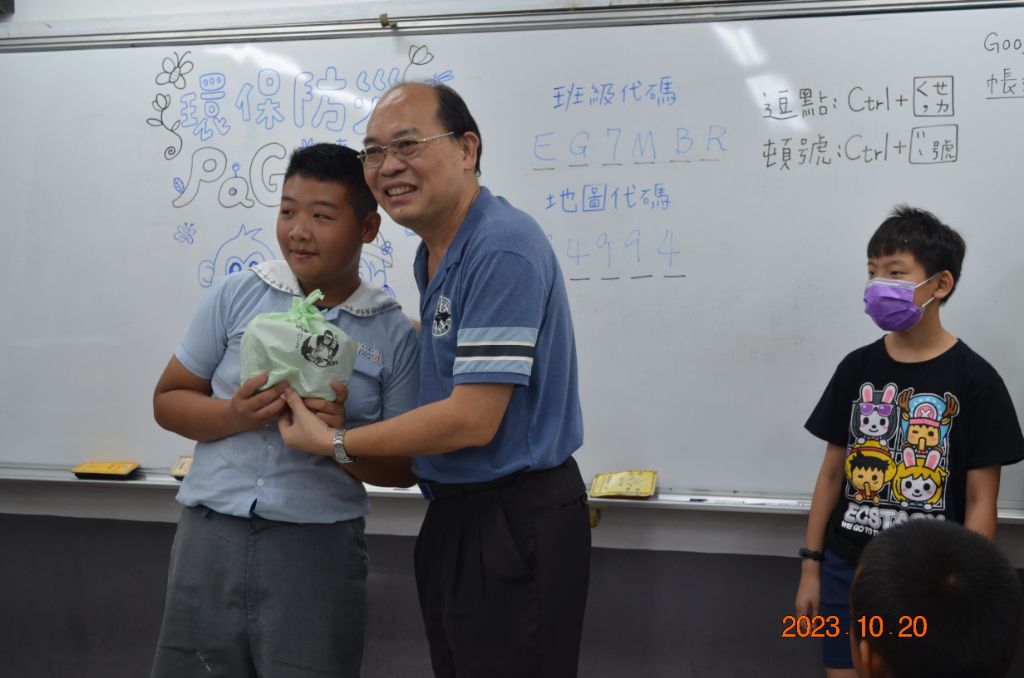 學校六年級的十個班,經過班級的初賽,各班勝出的前三名,共有三十名小朋友晉級參加10月20日校內盃複賽。最終由成績排行的前三名邱名綸、陳柏恆、張奕民獲得名次。除了獲頒精美禮品,也將代表學校參加第三屆縣市盃PaGamO 環保防災勇士PK賽。