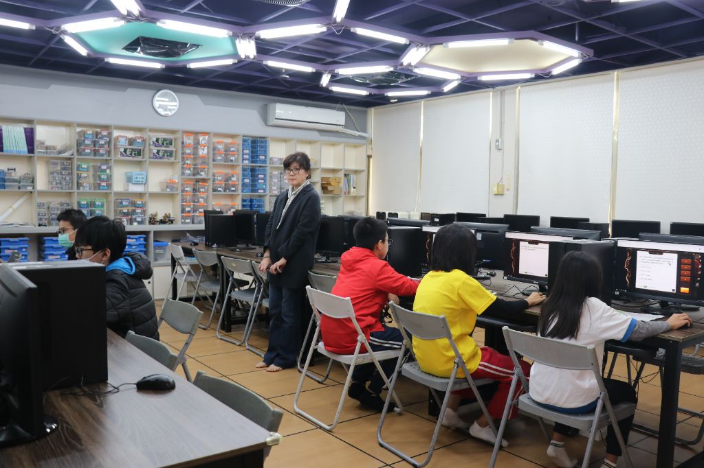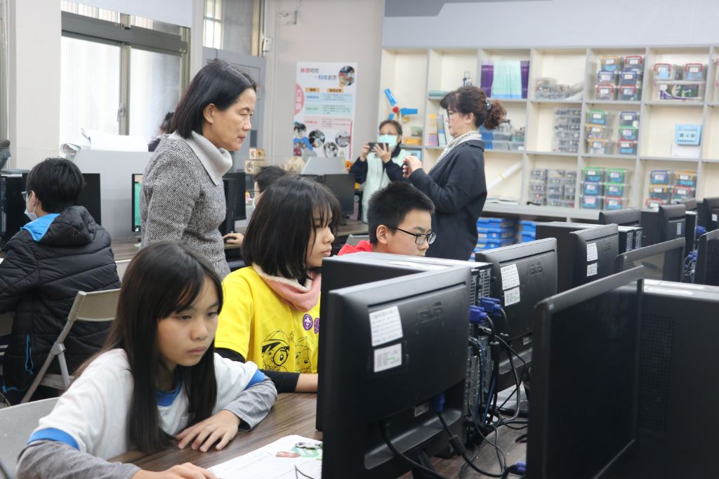 同學PaGamO競賽正如火如荼進行著,興德國小校長林碧雲也緊盯賽程,了解比賽的進度。[攝影者:賴麗惠]