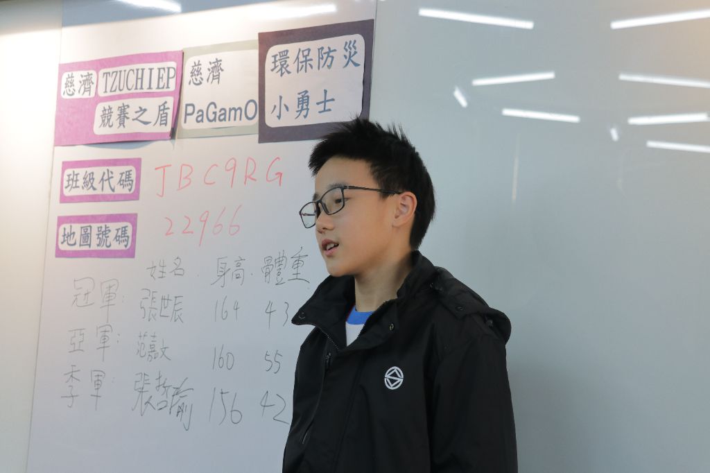 化名豆豆的張世辰分享:「得到第一名,我心裡很開心!在活動中,我學習到很多,有機會的話,我也想要上國際盃,希望以後在自然生態上多多保護環境。平時可以隨手做垃圾分類,資源回收還可以再利用。」
