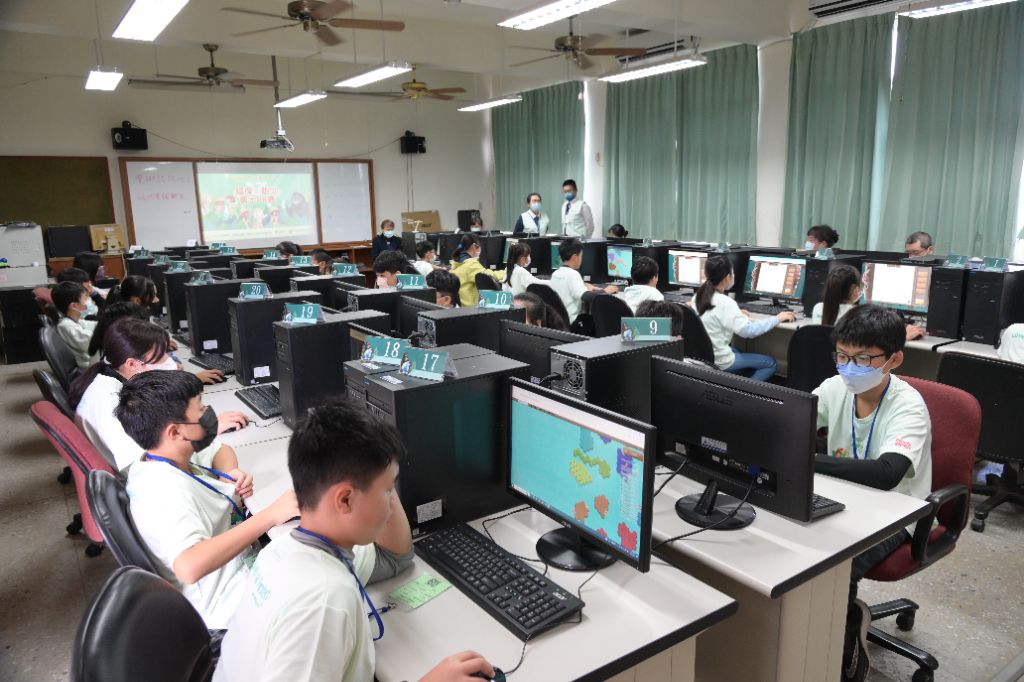完成報到的七十位選手分三組志資訊教室競賽。選手們根據設定,回答涵蓋防救災、省水惜水、海洋汙染、氣候變遷、災害防救、循環經濟、節能減碳、空氣汙染、資源回收、食物環保等等十二大議題的題目。[攝影者:黃秀琴]
