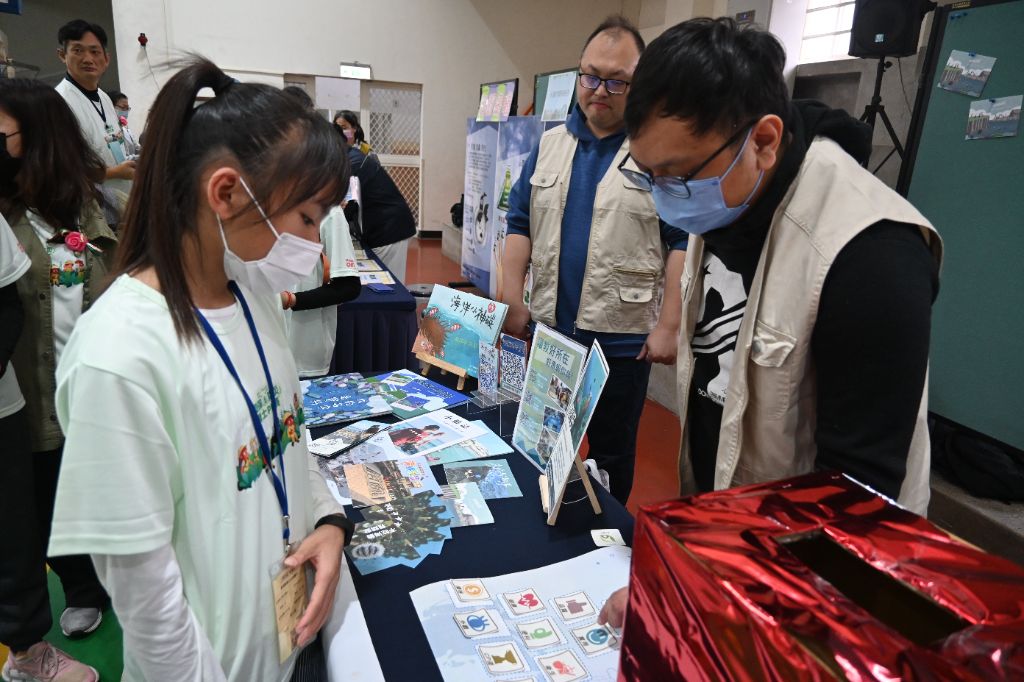 像謝光榮老師就幸運地抽到指導老師獎「大愛感恩科技修賢單肩包」,榮獲第二名的東衛國小洪翔吾抽中環保實作獎,第五名的石泉國小劉云熙同學則得到加碼好禮小米手環,離島將軍國小楊瑄妮名列第九,並將環保實作獎的電競耳麥抱回家。