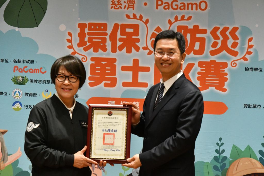 「環保署每年會舉辦全國環保知識大競賽,這是非常難的,苗栗縣好像沒有得過獎,可是去年(2023)苗栗縣拿到女生國小組全國冠軍。這個跟環保防災電競賽有關係,透過遊戲的方式,孩子可以了解正確的觀念,在生活中實現。」鄧副縣長感動地說,這就是慈濟一直在推動愛地球,愛地球就是生活的DNA。