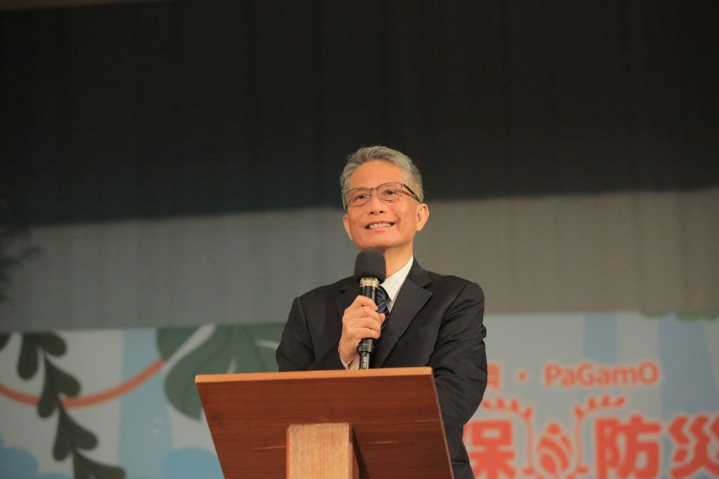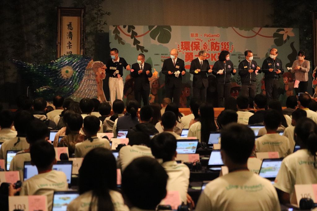 慈濟基金會熊士民副執行長致詞表示:「環保知識很重要,教育要接軌,藉由科技遊戲來翻轉學習,最重要的是環保防災淨零永續。從學習中不論是省水、省電、愛護自然,都能發揮行動力的實踐來愛地球……」[攝影者:鄭春金]
