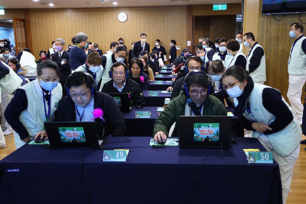 另類電競!以學生最喜歡的電競遊戲引入環保防災議題常識、環境永續的觀念的多元議題相結合,併入題庫裡,讓選手們學習到綠色公民意識與責任,更期從玩遊戲中深植心田。[攝影者:陳何嬌]