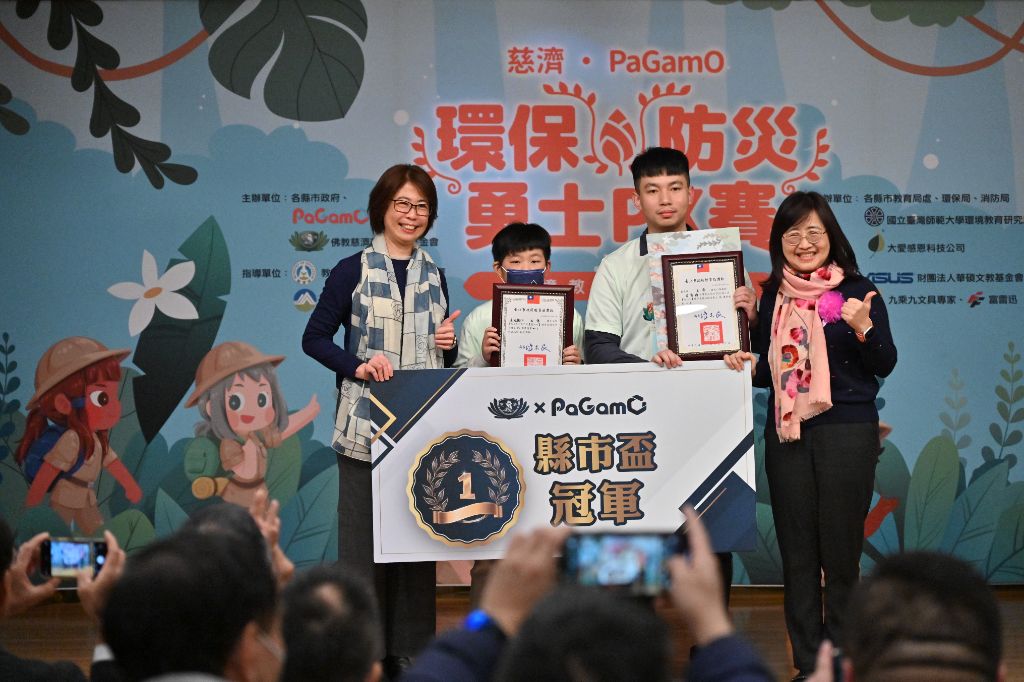 蒞臨活動會場貴賓,教育局副局長鄧進權表示,教育局跟環保局、消防局一起合作,在蔣萬安市長的帶領訂定第一個淨零排放,代表臺北市對未來環境永續的宣示,邁向環保教育更加落實。環保教育有三個階段「知識導入、環保與消防的實踐、落實生活當中」慈濟與PaGamO合作,就是落實環境永續的教育,在這部分做的非常好,這是一生中最重要的,市政府不管是教育局或環保局、消防局跟民政局未來會在環境永續這部分更加的努力做到最好。
