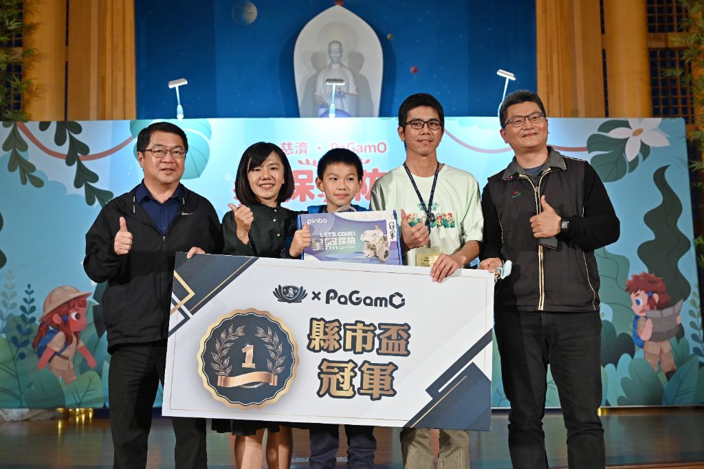 嘉義縣長翁章梁蒞臨PaGamO電競現場表示,節能減碳、地球降溫的問題是全世界共同的課題,讓小朋友透過遊戲,建立保護地球的觀念。[攝影者:蕭智嘉]