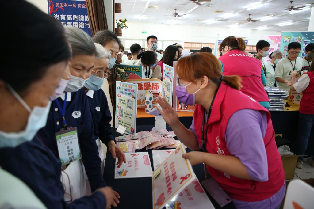 在選手休息區旁,設有主題科普嘉年華教育站,由南投縣衛生局、環保局、消防局、社會勞動處設置攤位宣導,志工與學生們踴躍參與。[攝影者:洪銘輝]