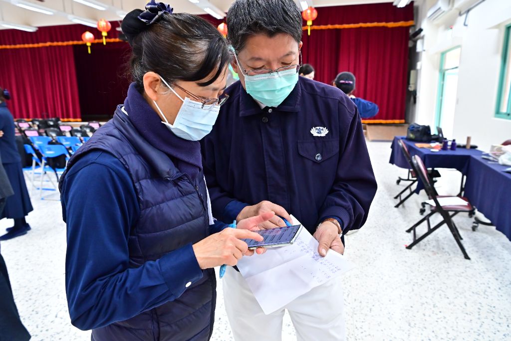 兩位活動的推手,金門協力隊長洪松柏(右)與課務江鈴琴,經常一起討論活動事誼,要將每個環扣協調好。[攝影者:鄭村池]