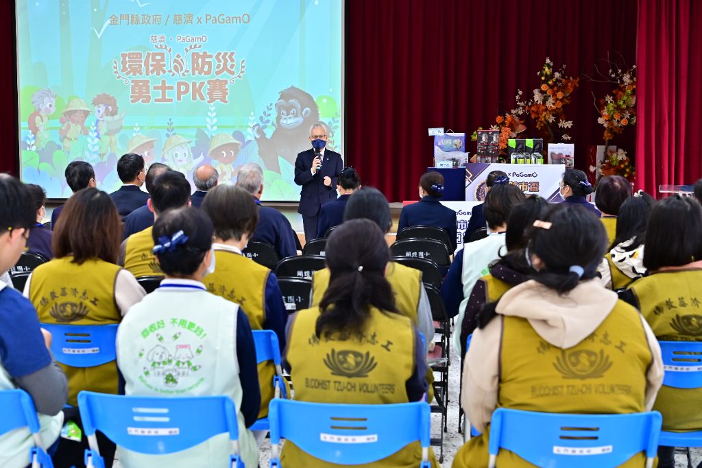 慈濟‧PaGamO環保防災教育勇士PK賽,首度前進金門,與金門縣政府合作,於3月17日在金門縣開瑄國小合辦電競賽。場內選手卯足全力較勁,場外邀請金門縣教育處、環保局和消防局等局處長及校長舉行溫馨座談。 十六所學校、四十八名選手,歷經一番激烈的競爭,順利產生前十名,將代表金門參與國際盃。慈濟基金會同仁、臺灣金門兩地慈濟志工、會眾,共有九十四人默默的付出,同心協力共同完成賽事!