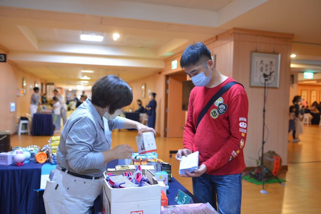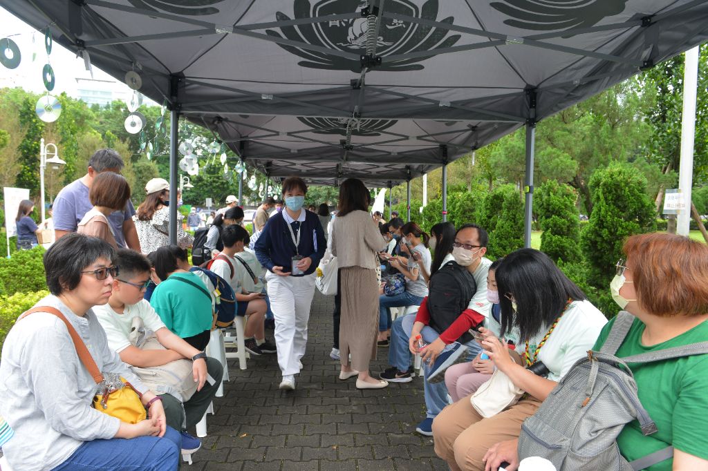 慈濟志工設置「防災闖關區」,防災疊疊樂,地震躲哪裡?牆與柱能拆嗎?如何避難?「環保玩創意」,泡棉花、環保花、創意相框,「與地球一起呼吸」環保大富翁、還樸新生活等等,共有二十二個站,闖過三關即可到服務櫃臺兌換獎品,有玩有獎品,親子們玩得不亦樂乎。