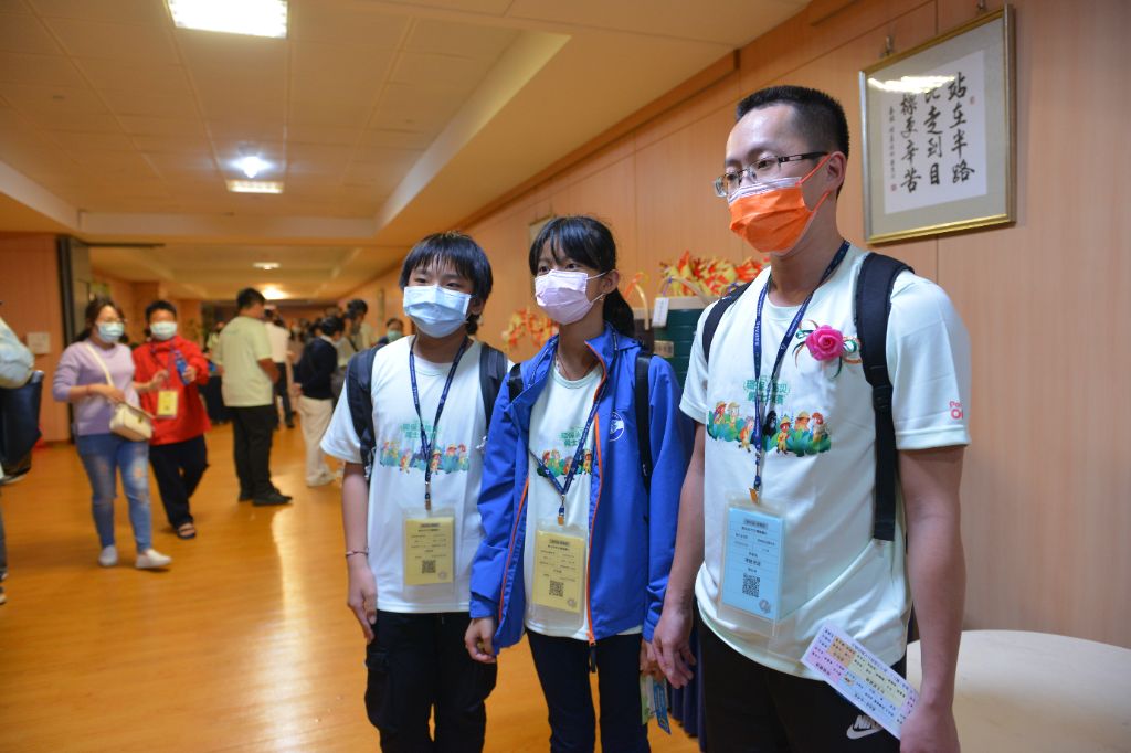貢寮區福連國小帶隊老師陳宏瑋(左一)希望:「以後中年級或者低年級小朋友,也可以參加這方面的競賽,這樣讓他們對於環保知識、有更深入的了解。」[攝影者:林靜芳]