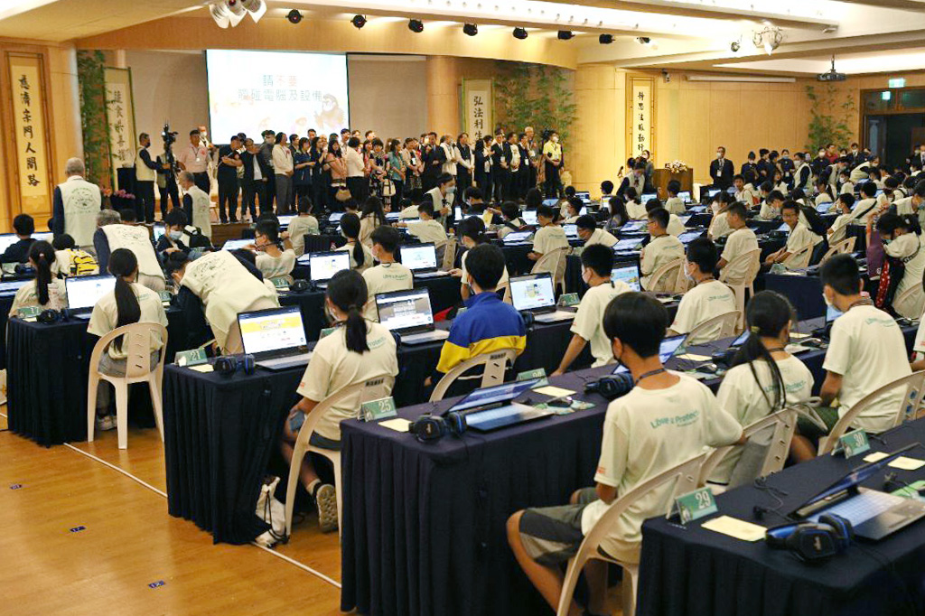 開幕儀式隆重結束後,貴賓和校長們一同進入二樓感恩堂的賽事會場,在志工的指導下,準備展開PaGamO電競遊戲的實作體驗,人人聚精會神盯著電腦螢幕,親身體驗遊戲的樂趣與挑戰;隨後上臺,熱情鼓掌歡迎參賽選手進到會場。