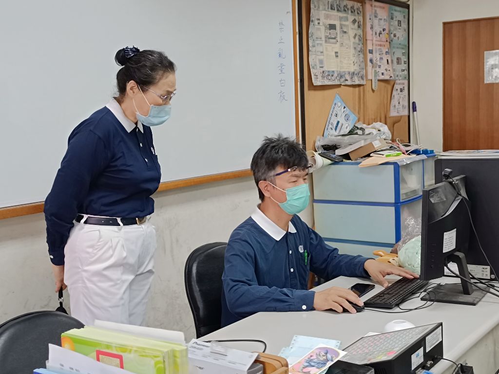 學生陸續到來,志工林美惠熟練地將未到的班級,報告給電腦老師涂俊文,涂老師拿起對講機馬上call來參賽學員。