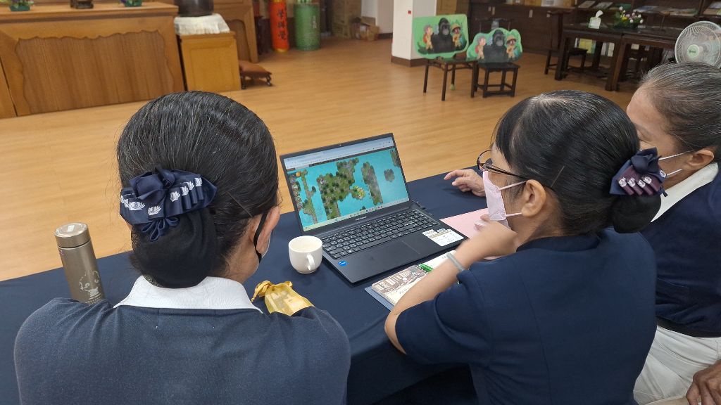 林美貴也紛別介紹入班、入校注意事項說明,讓志工從旁協助學生善用規則,用電競遊戲的方式,讓知識學習突破時間、場域空間的限制,發揮防災教育最大效益。[攝影者:劉怡君]