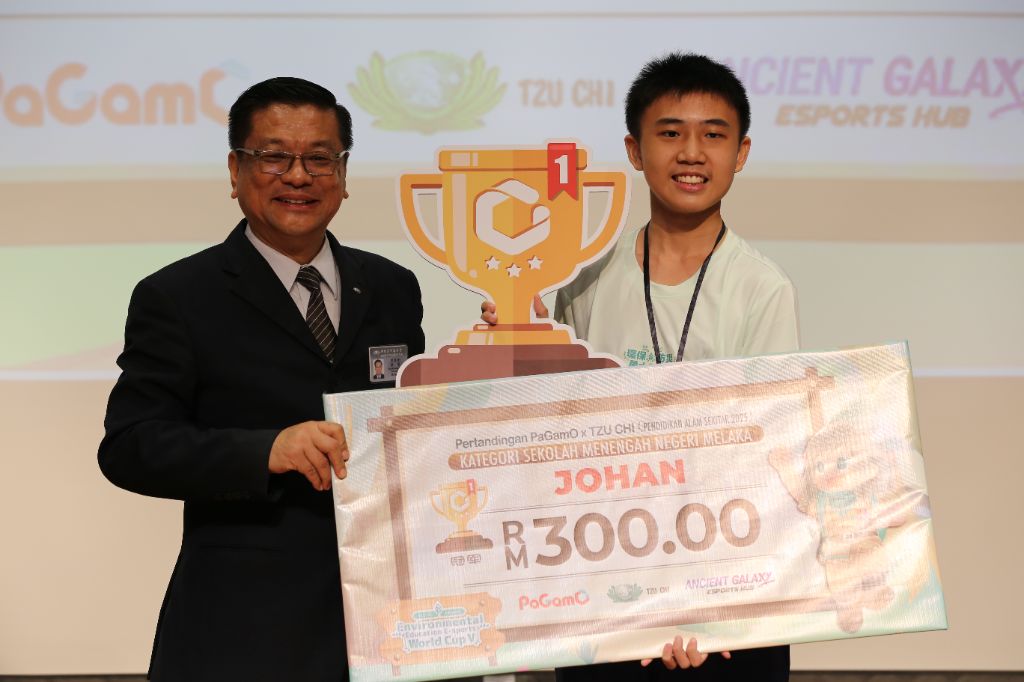 去年(2024年)以小六身分參加PaGamO馬六甲州賽、勇奪小學組第三名的柯辰宇,今年再度出征,意外榮升為中學組冠軍!他說,從比賽一開始便全神貫注地答題,平時勤於刷題的習慣發揮了關鍵作用,遇到新題目也能從中推理出答案。這回比賽讓他首次接觸並理解「淨零排放」的概念——意指減少溫室氣體的排放,以保護地球環境。