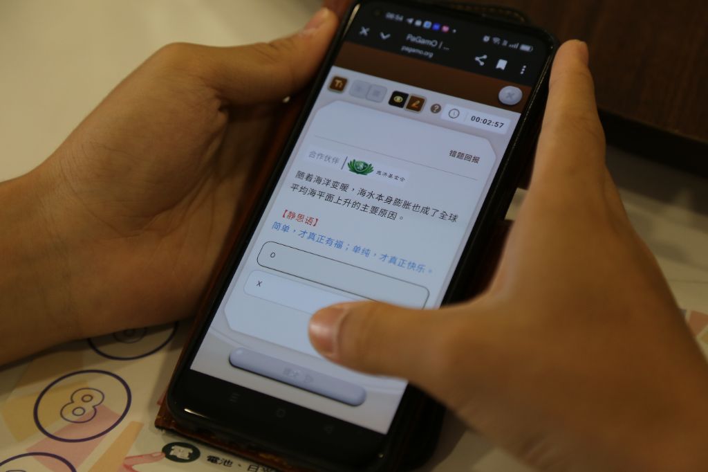 平時熱愛電子遊戲的她,當老師介紹這項「能邊玩邊學環保知識」的PaGamO線上比賽時,立刻舉手報名。「一聽到可以用遊戲方式學東西,我就想試試看,並邀約同學一起參加。」陳欣靈說。