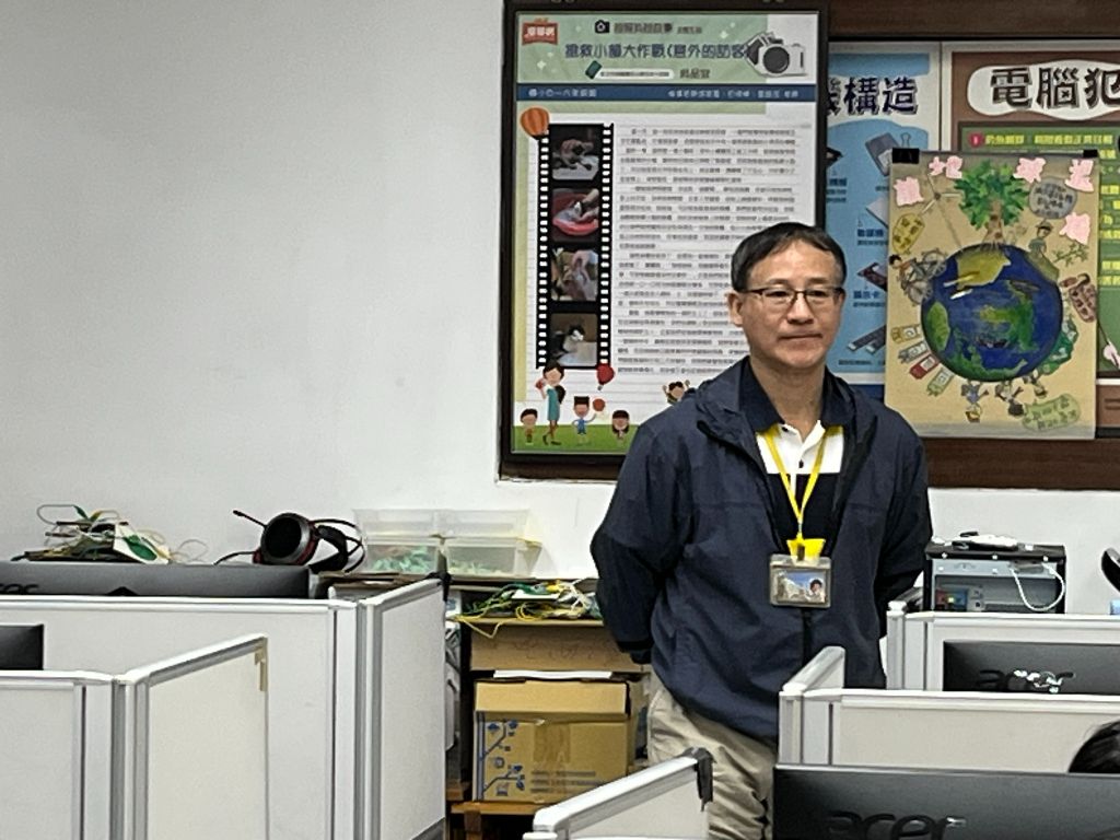 11月25日午間,忠義國小舉辦校內複賽,六位志工們來到電腦教室,電腦老師田德勝正為十五個班級代表學生們確認報到,大家口中做事細心的他,教電腦二十幾年,與學校三位老師輪流負責帶學生參加,慈濟環保防災勇士盃電競賽,今年是田老師輪到第二次負責。