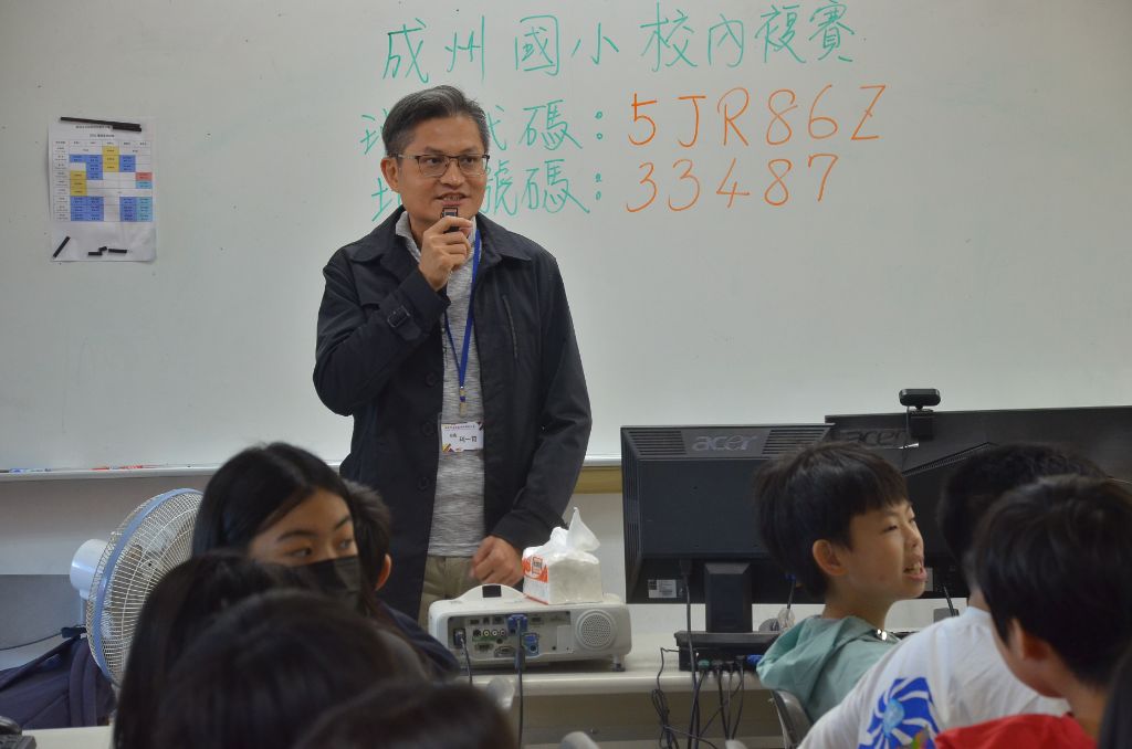 比賽開始,教室內只聽見滑鼠輕點的聲音。孩子們專注凝視螢幕,一題一題作答,爭分奪秒。短短十五分鐘,在高度專注中悄然流逝。隨著「停止計時」的指令響起,校內前三名名次也隨即產生,將代表成州國小邁向更高層級的總決賽舞臺。