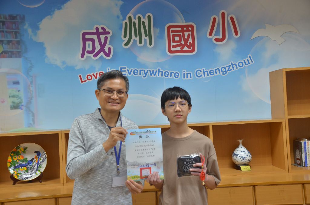 校內第二名劉秉叡同學分享,從聽到比賽說明開始,就會主動在家練習題目,從班級賽一路晉級校內賽,信心也隨之提升。他提到,有些題目確實有難度,但也讓他更清楚自己的不足。生活中,他開始留意節約用水、落實垃圾分類,並期待未來學弟妹一起重視環保與防災。