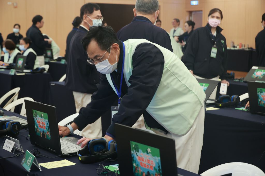 「縣市盃環保防災勇士PK賽」,後端的電腦操作很嚴謹。賽事組主負責資訊志工鄭王駿表示,承擔五年來,看著當年師生參與時,抱持好奇態度。經過幾年志工積極推廣下,現在以慎重態度面對,感覺很開心。他表示:「面對沸騰的地球,孩子透過比賽後,更加了解全球沸騰若要改善,其實是在自己身上。這幾年因為慈濟辦理PaGamO,才讓國人重視環保,很開心自己是慈濟一份子。」
