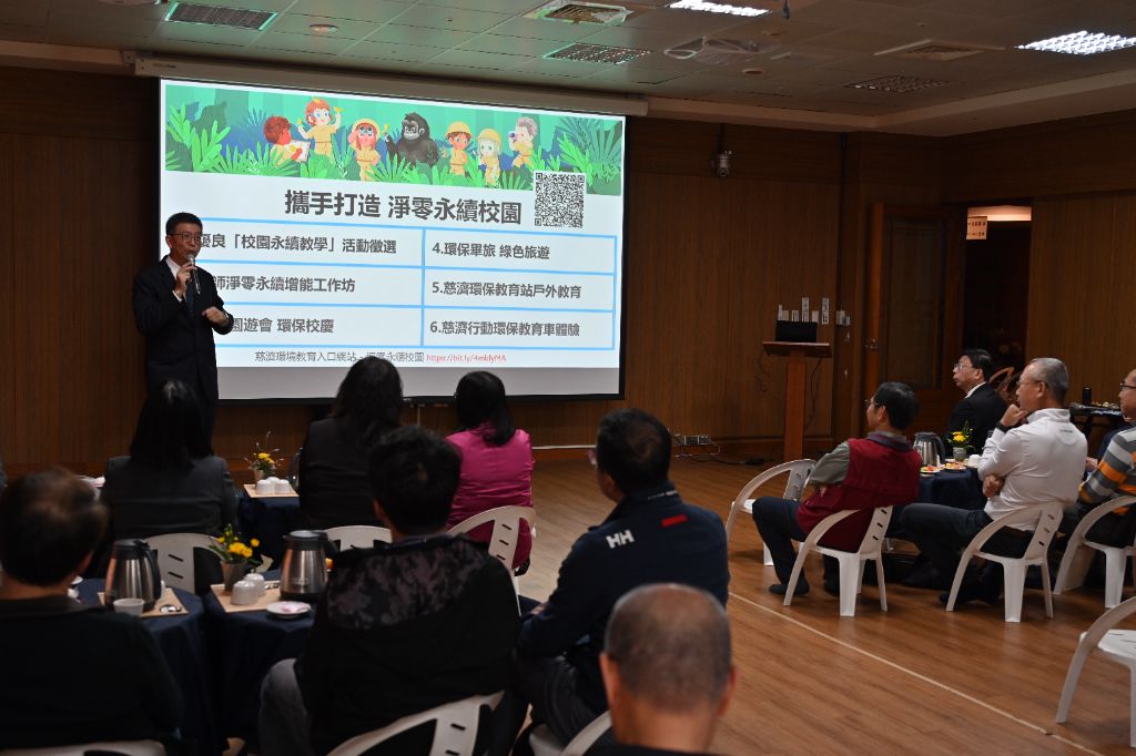 第二項「永續教育師資培訓」,許多學校正積極推動淨零永續教育,但常面臨專業講師不足的困難。慈濟有專業的講師陳哲霖,是環境教育獎的得主。協助培訓教師成為環境教育種子講師,讓永續理念能在校園中長久扎根。