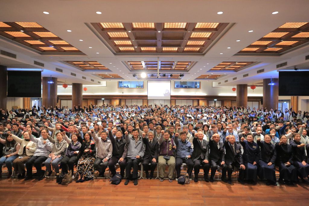 全體人員在司儀帶動口號中,一起跟著黑猩猩KOKO救地球。[攝影者:鄭春金]