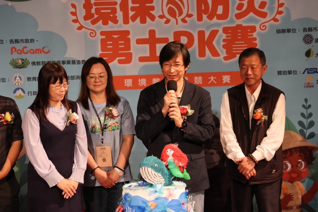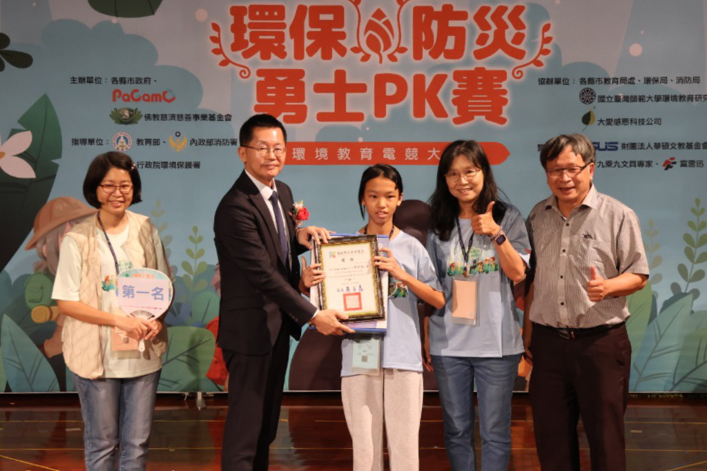 劉濟雨副執行長則表示,環保防災PK賽至今已邁入第五年,感恩教育科技專家葉丙成教授與葉欣誠教授的協助,讓環境教育透過數位平台變得生動活潑,讓孩子在遊戲中學習,在學習中成長。