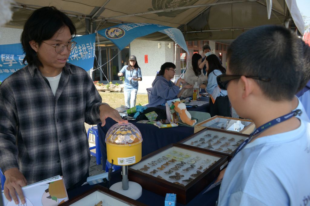 科技結合環保友善農業新觀念。現場也有嘉義大學設攤,推廣利用燈光防治害蟲的方式。透過特定光源驅離「吸果夜蛾」等害蟲,減少農藥使用,達到環保與農作保護的雙重效果,讓民眾對永續農業有更多認識。