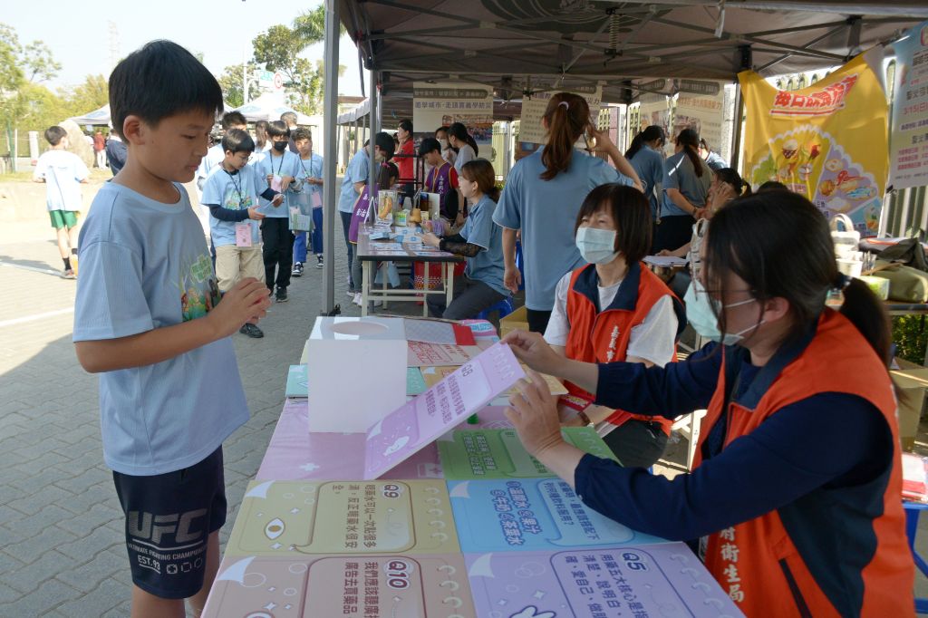 活動外場更有環保局、消防局及各政府單位設置多元宣導攤位,推廣環保理念與防災知識,期盼從孩子扎根,將正確觀念帶回家庭。用藥安全「孫子兵法」從小做起。衛生局技正何宛青表示,透過簡單易懂的方式,先讓孩子建立基本的用藥安全觀念,再由孩子回家向長輩宣導。