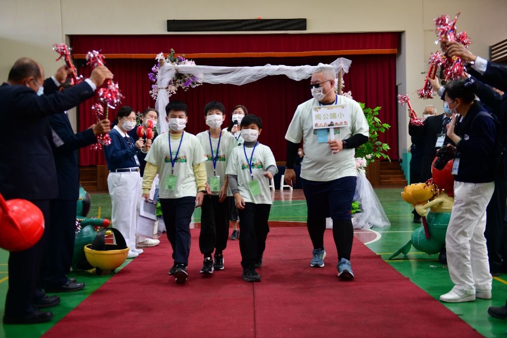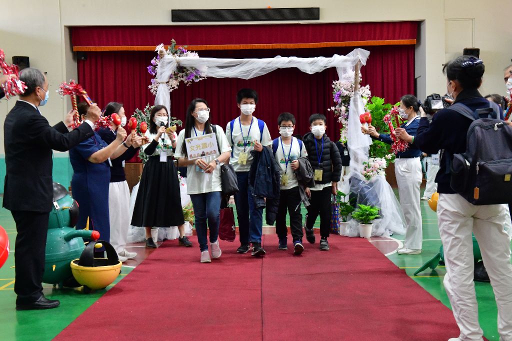 各校選手在老師帶領下,走上星光大道(圖為文光國小師生)。[攝影者:陳李少民]