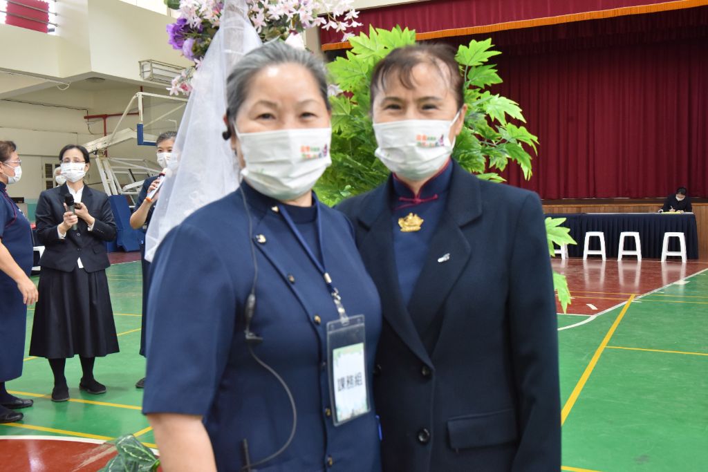 李碧浪(右)感恩志工吳美杯(左)引領她接觸慈濟,跟著大愛媽媽走進校園,重拾教學熱情,找到生命的第二個春天。[攝影者:吳碧華]